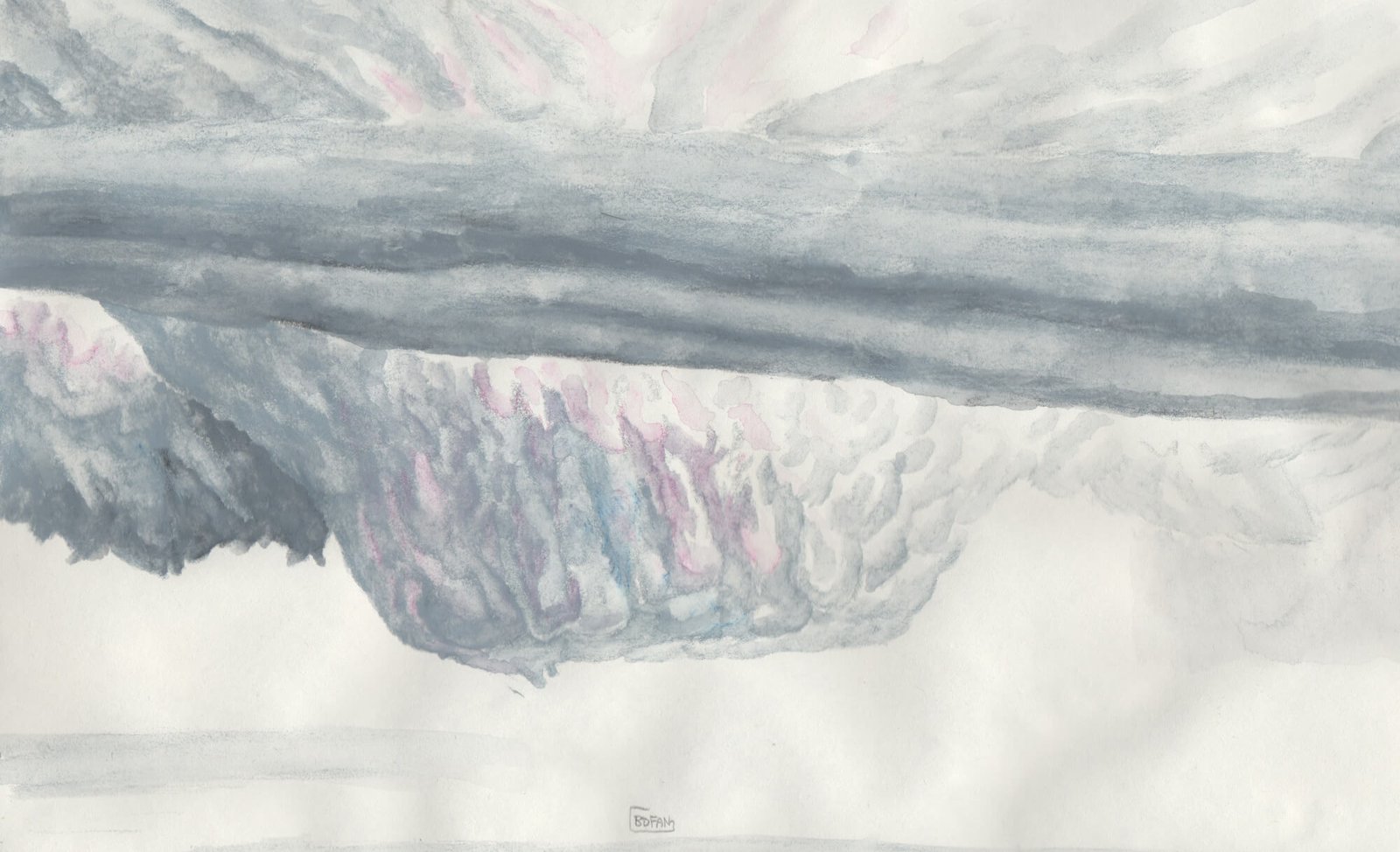 Représentation de la tornade observée à Liège le 4 avril 1846. Illustration : Frédéric Godefroid©Belgorage