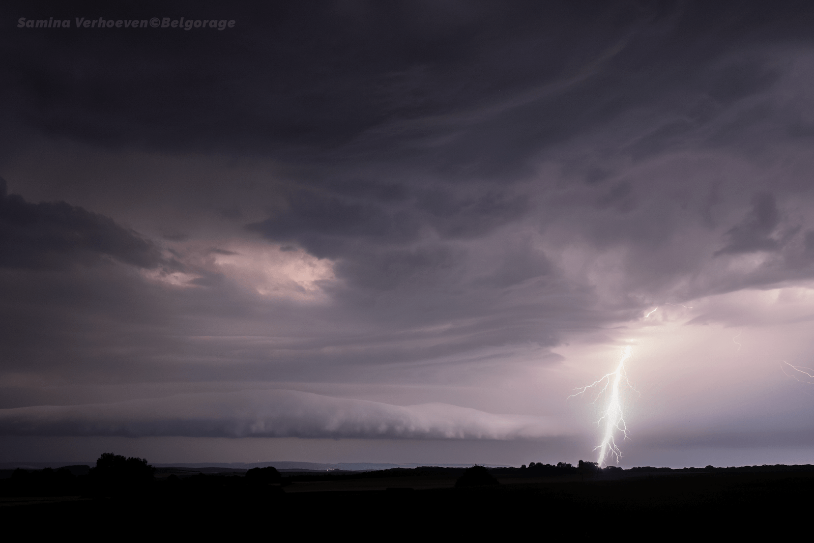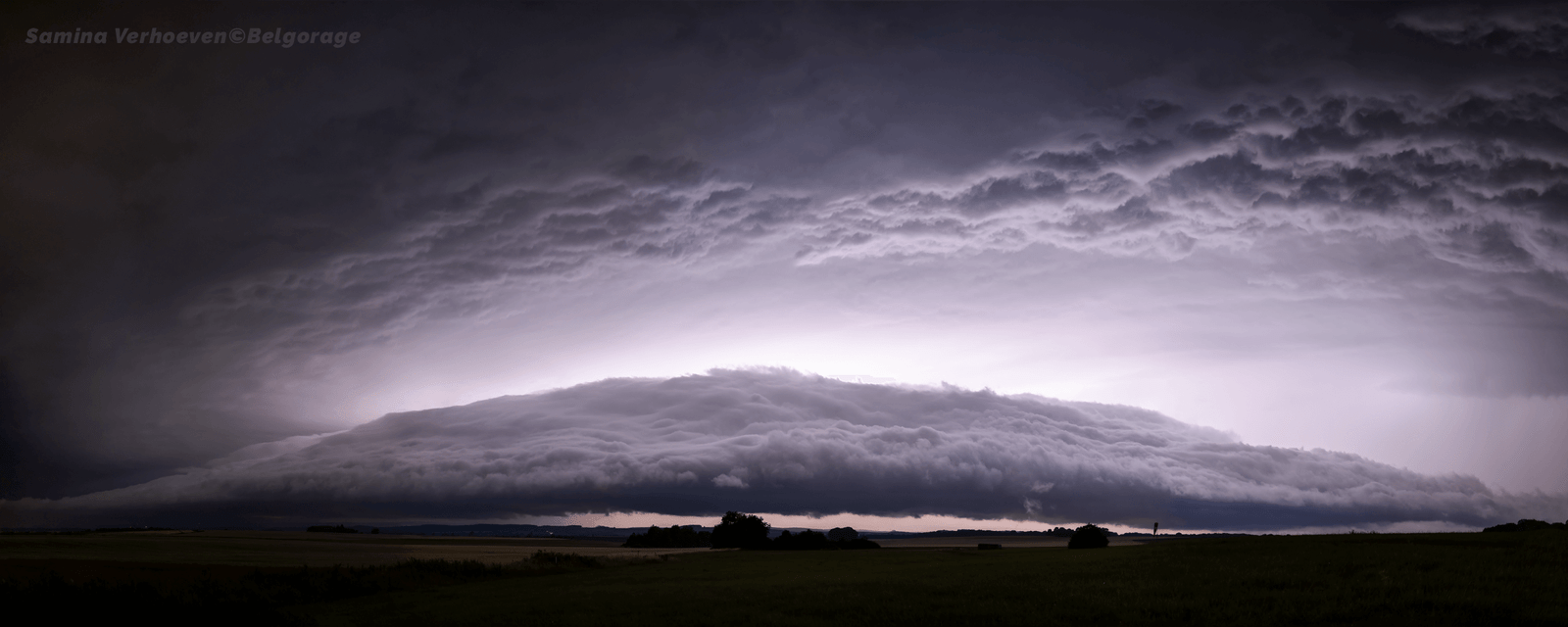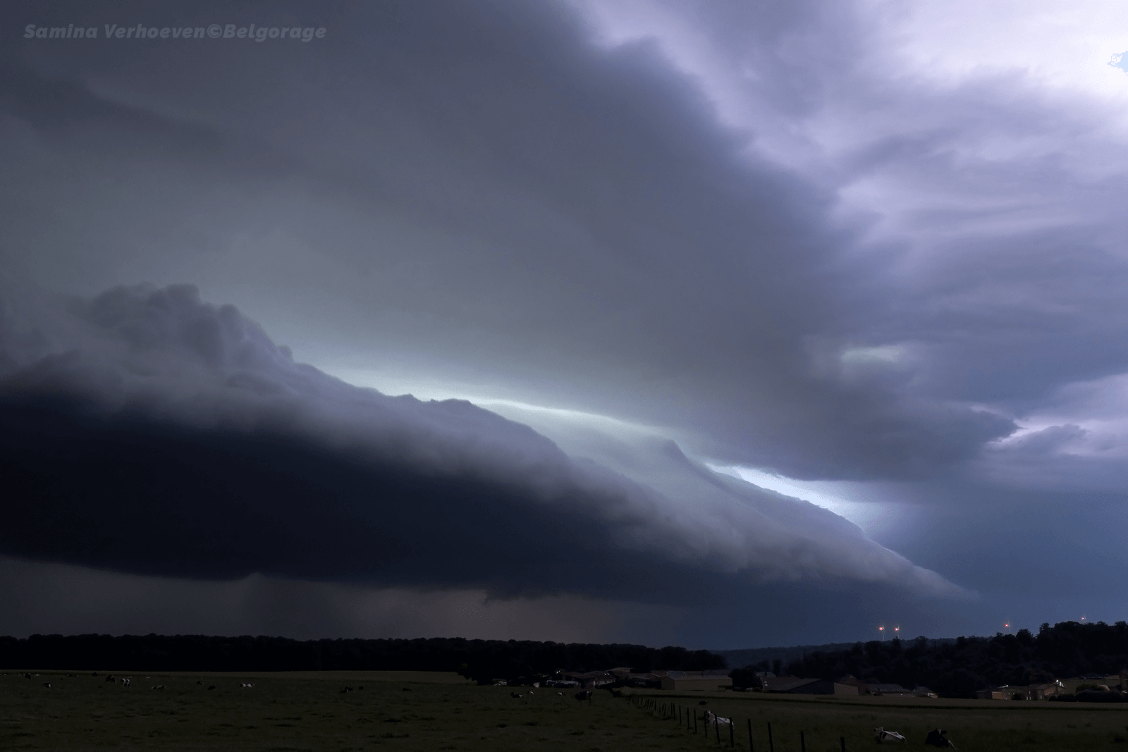 Structure nuageuse impressionnante arrivant sur la frontière belge à Villancy dans le département de la Meurthe-et-Moselle en France, le 20 juin 2022 vers 3h40. Crédit photo : Samina VerhoevenStructure nuageuse impressionnante arrivant sur la frontière belge à Villancy dans le département de la Meurthe-et-Moselle