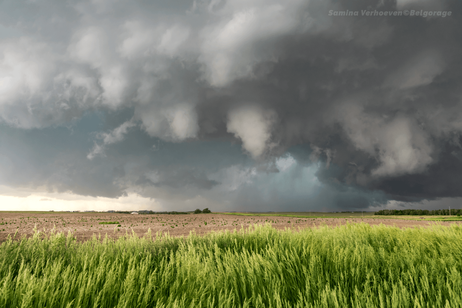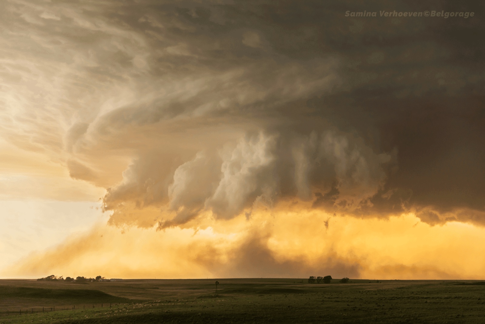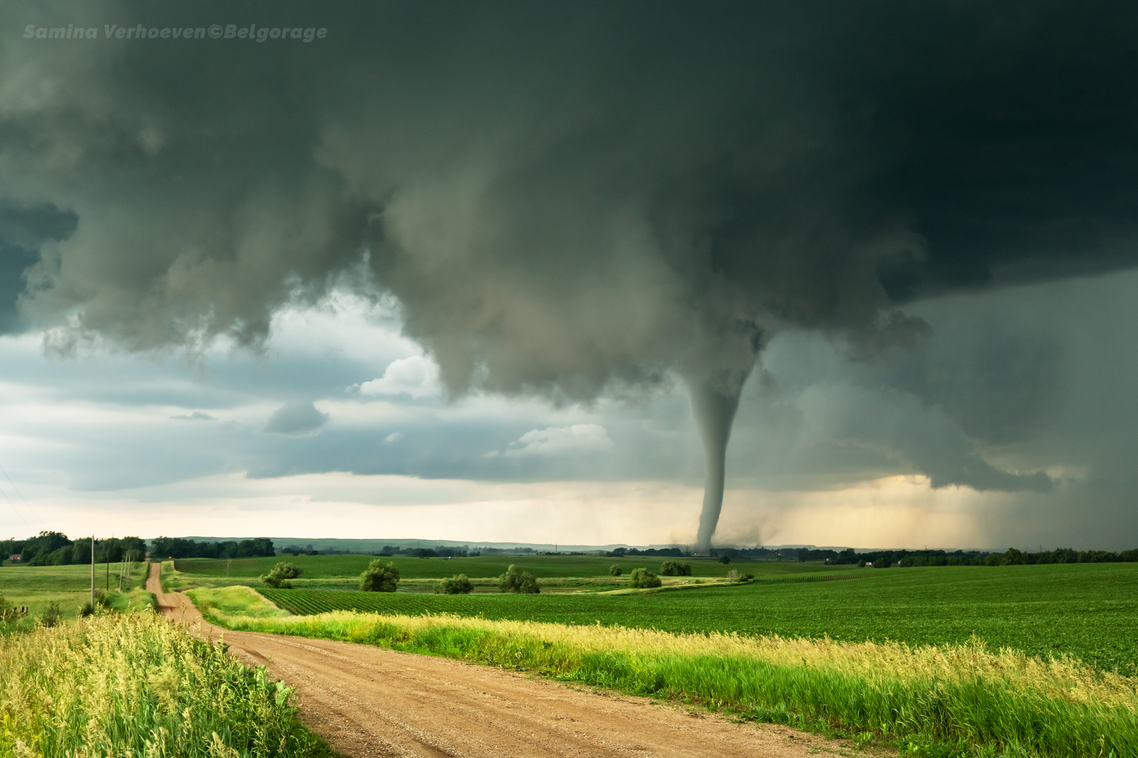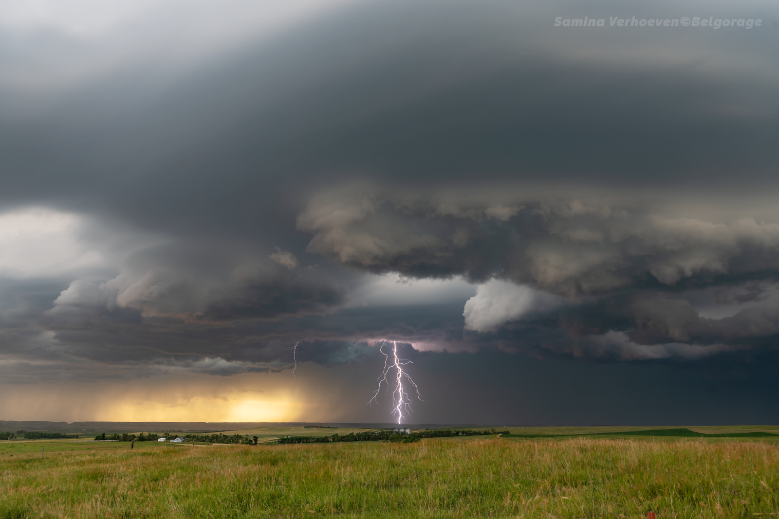 RFD ('Courant descendant de flanc arrière' en français) produit par une série d'orages supercellulaires HP ('Précipitation intense' en Français) qui se suivaient les uns derrière les autres. L'équipe resta bloquée dans la ville le temps que l'eau s'évacue. Prise de vue effectuée dans la ville de Manville dans l'état du Wyoming, le 03 juin 2015 à 22h14