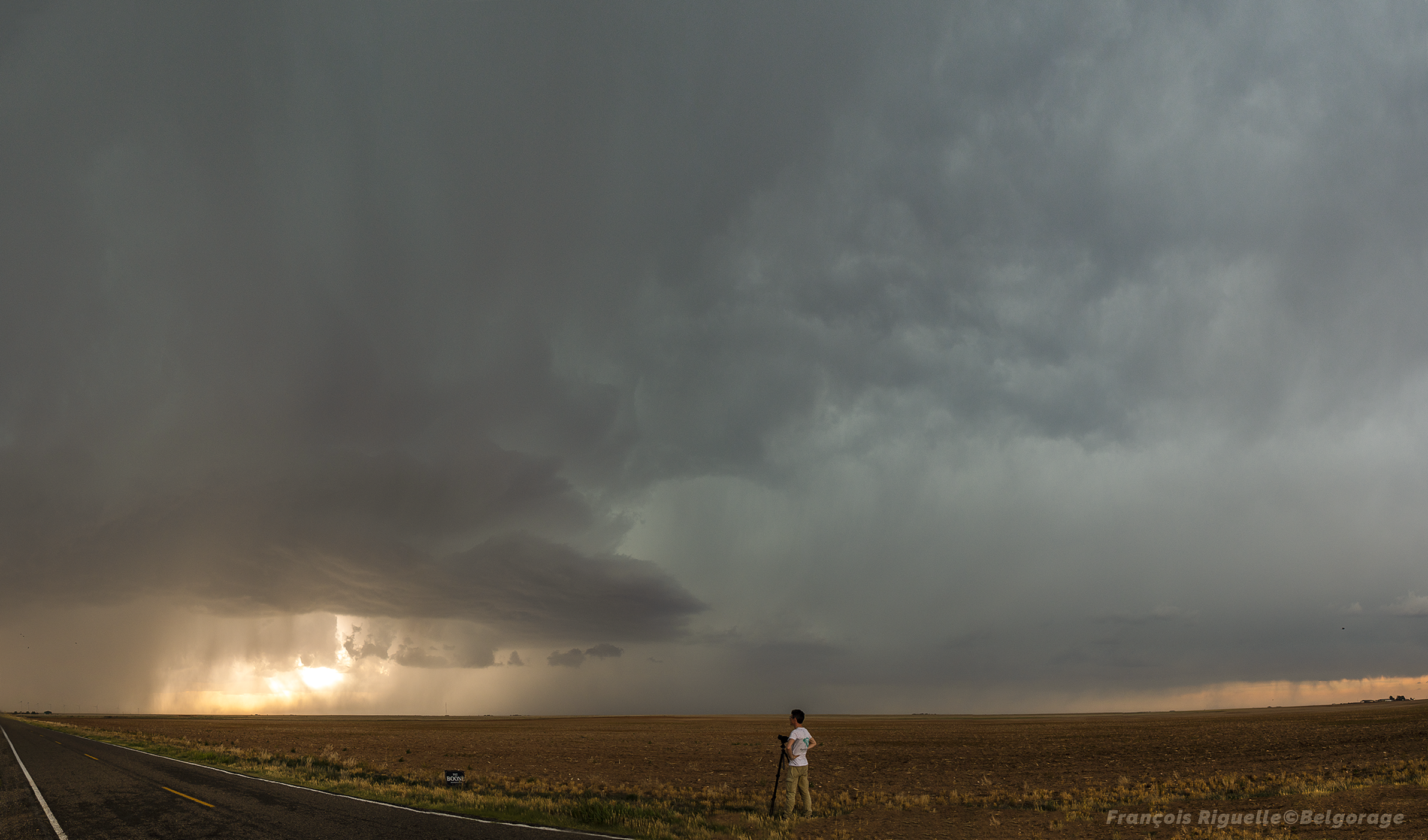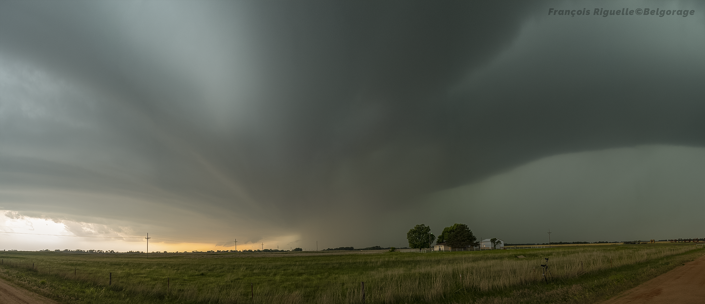 Néanmoins, à notre arrivée, l’orage se mue pour présenter une incroyable structure typique des supercellules LP, ce qui nous fait vite oublier la frustration d’avoir raté une tornade. Après en avoir profité un moment, il finit par se dissiper complètement au coucher du soleil, en quelques minutes à peine.