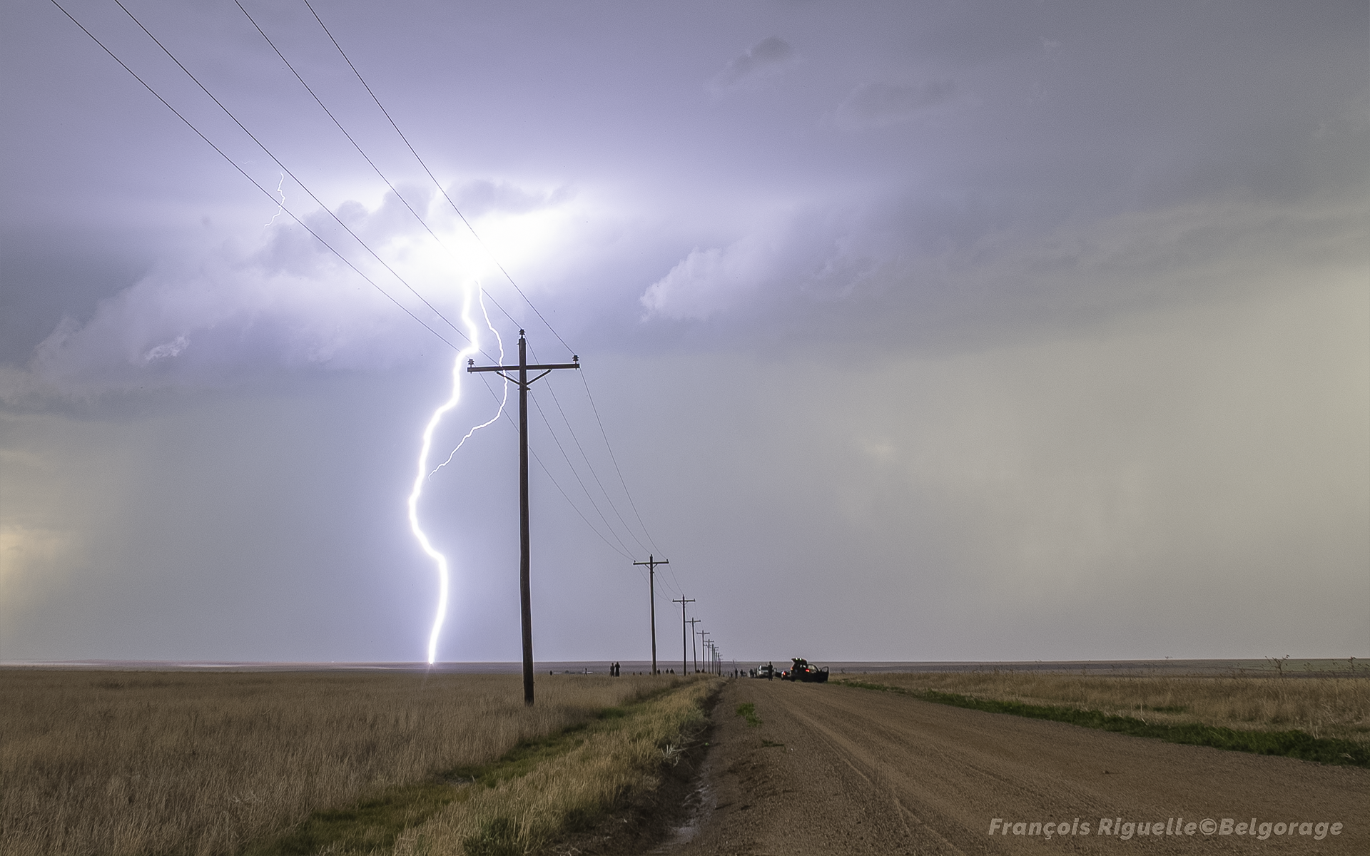 Ensuite, on rattrape la cellule qui se déplace vers l’est à allure réduite, pour finalement la voir se dissiper au coucher du soleil, ce qui donne malgré tout de belles ambiances. Ainsi, nous avons suivi cet orage durant toute sa durée de vie, et ce, pendant plusieurs heures en profitant un maximum, ce qui en fait une des traques les plus marquantes de notre séjour.