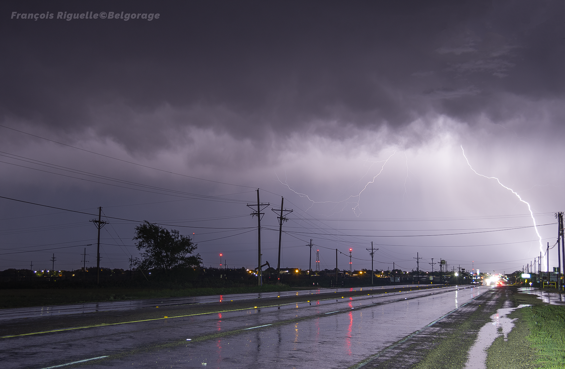 Après un retour au car-wash pour un trépied oublié, on prend la route pour rejoindre un motel, alors que le système orageux est à présent hors de portée. Cependant, après un certain temps, on remarque qu’une petite cellule se forme à côté de nous, pas encore visible sur les radars. Elle lâche rapidement de puissants coups de foudre, et nous décidons de faire un arrêt pour l’observer. De plus, la foudre ne cesse de frapper, montrant une intensification de l’orage.