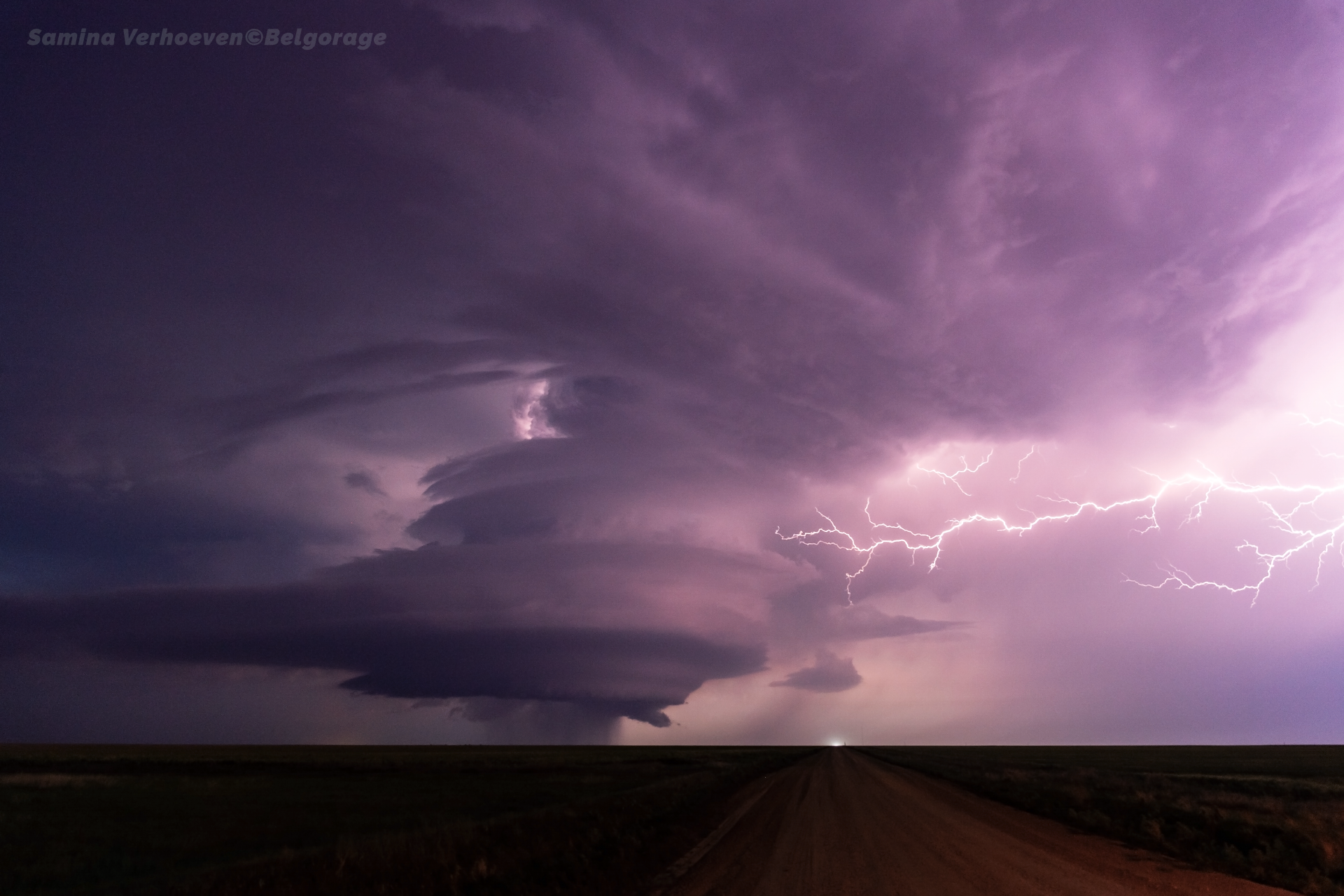 Après un détour pour se remettre à nouveau sur sa trajectoire, la cellule se renforce et présente une magnifique structure de type LP, éclairée par l’activité électrique intense. De plus, au vu de son lent déplacement, nous profitons encore un moment du spectacle.